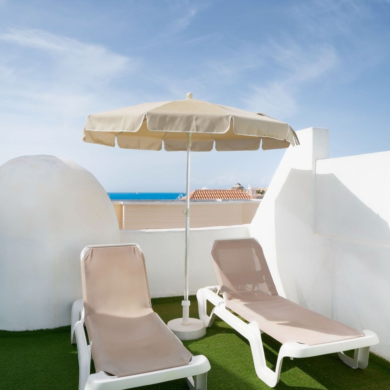 The One Bedroom Roofterrace are located on the first floor and are equipped with satellite TV, telephone, mini fridge, kettle (€) and safety deposit box (€). All units include a private bathroom with bathtub or shower and hairdryer, a living area with sofa bed and terrace.