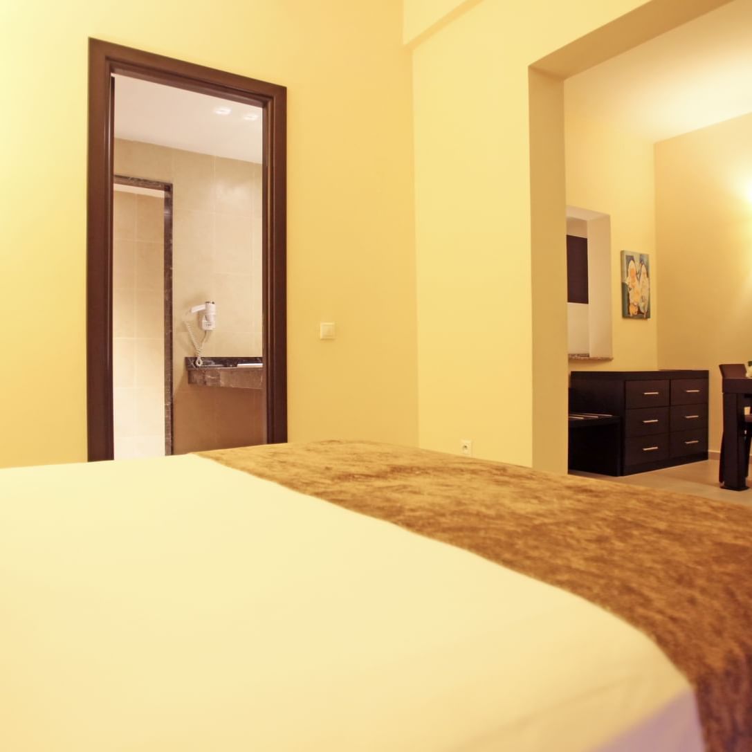 Les studios sont équipés d'un lit double, d'un salon avec 2 canapés-lits et d'une salle de bains avec douche. De plus, ces chambres sont équipées d'une kitchenette avec réfrigérateur et bouilloire électrique, d'un sèche-cheveux, d'une télévision satellite, d'un téléphone, d'un coffre-fort, d'un minibar et de la climatisation / chauffage. L'occupation maximale des studios est de trois adultes avec un enfant ou de 2 adultes et 2 enfants.
