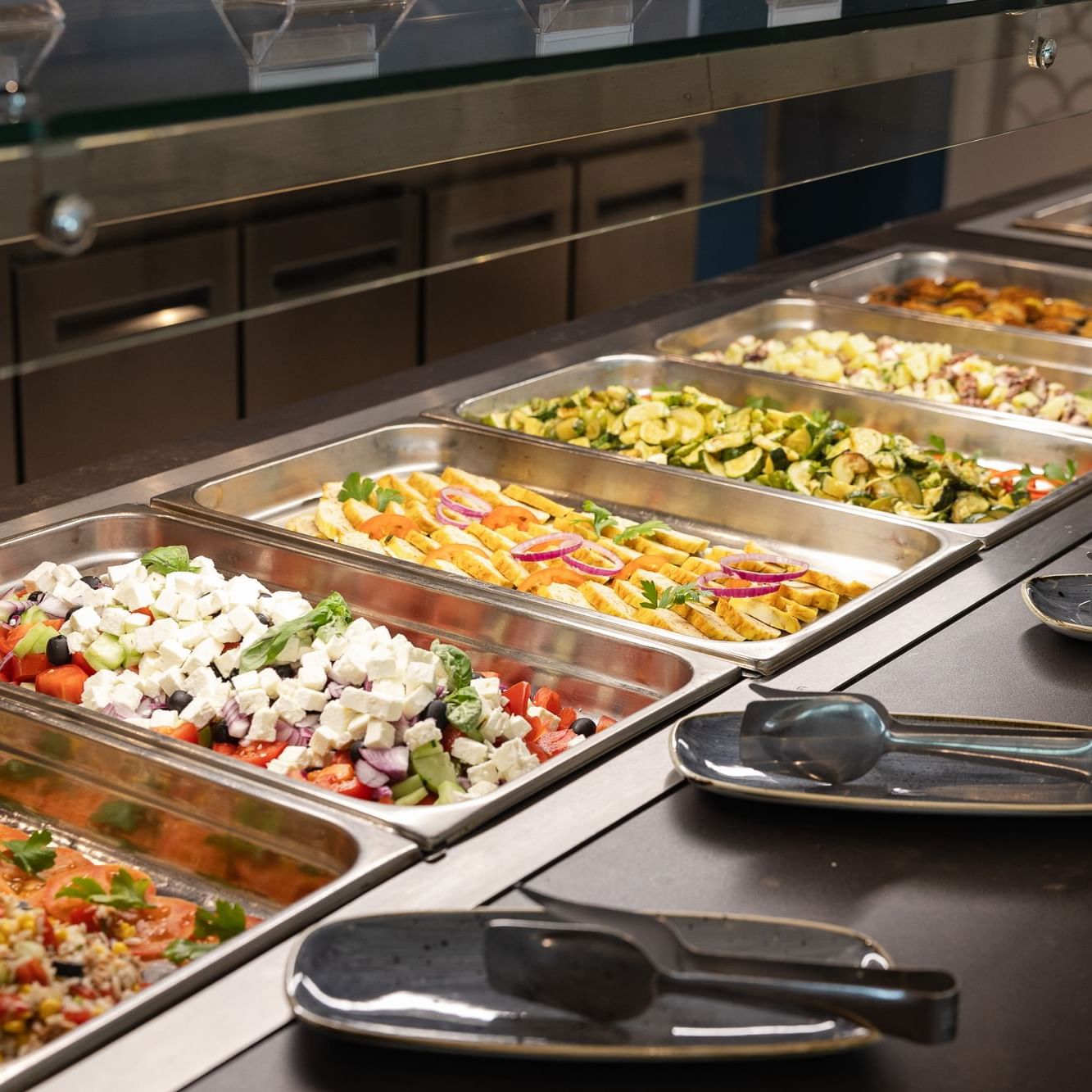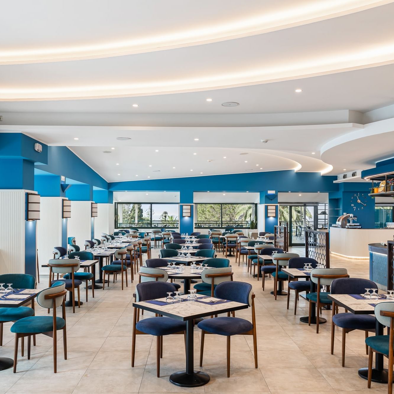 Oltre all'ottimo buffet self-service con piatti caldi e freddi, questo ristorante offre primi piatti cucinati direttamente sul posto dal nostro chef: la grande varietà di primi e secondi, tra cui piatti di carne e pesce, mira a soddisfare tutti i gusti. La sera, sulla terrazza, il ristorante offre un'ulteriore scelta di carne, pesce e verdure grigliate sul posto per deliziare i palati più esigenti. In sala sono disponibili tramite una serie di dispenser, bevande alla spina: birra, vino bianco, rosé e rosso, acqua minerale e bibite analcoliche. È disponibile anche un'ampia carta dei vini, con servizio a pagamento.