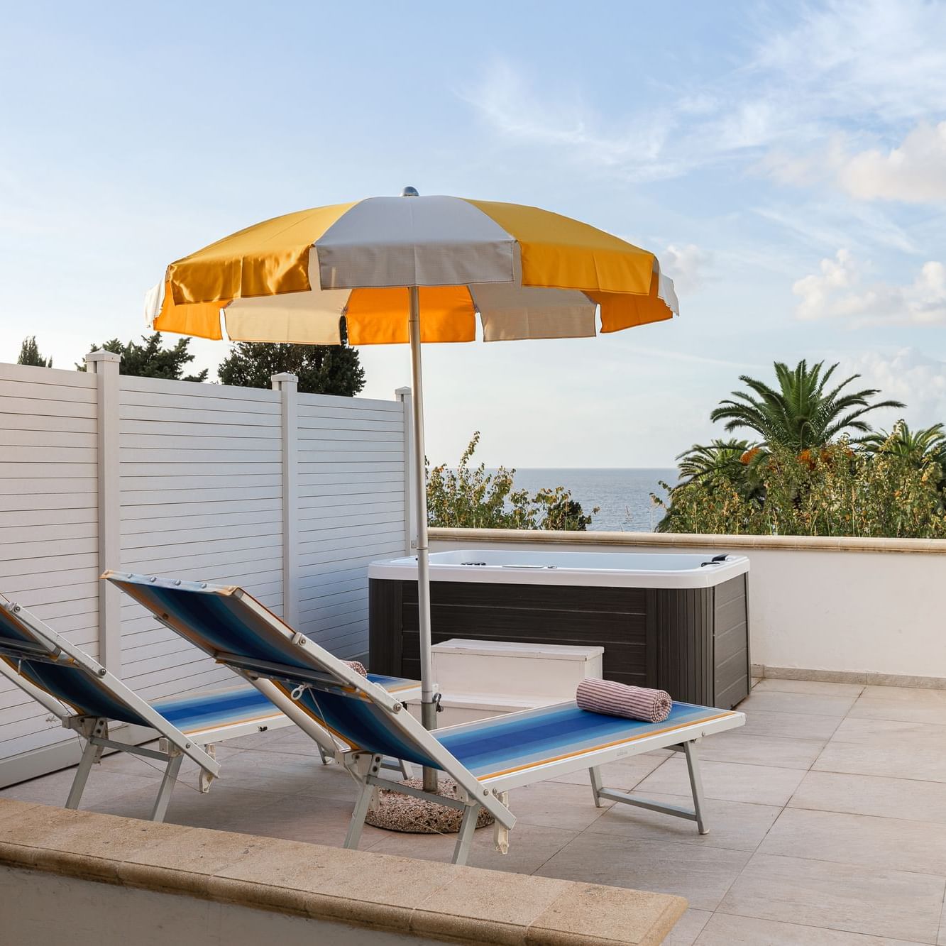 Le camere Premium con vasca idromassaggio sono spaziose e sapientemente ristrutturate e godono di una posizione privilegiata e sono circondate dal giardino botanico. Sono camere confortevoli con arredi moderni e offrono una terrazza privata con divano, ombrellone, 2 lettini e vasca idromassaggio. Tutte le camere dispongono di asciugacapelli, minibar, TV LED 43", aria condizionata, cassaforte e bollitore con una selezione di tè e caffè. Possono ospitare un massimo di 2 adulti e un bambino.
