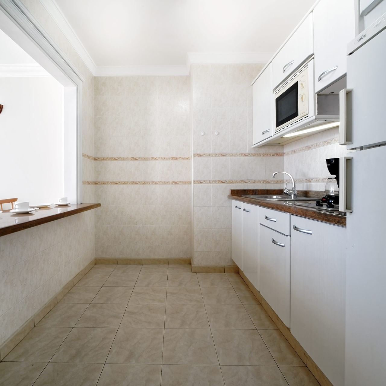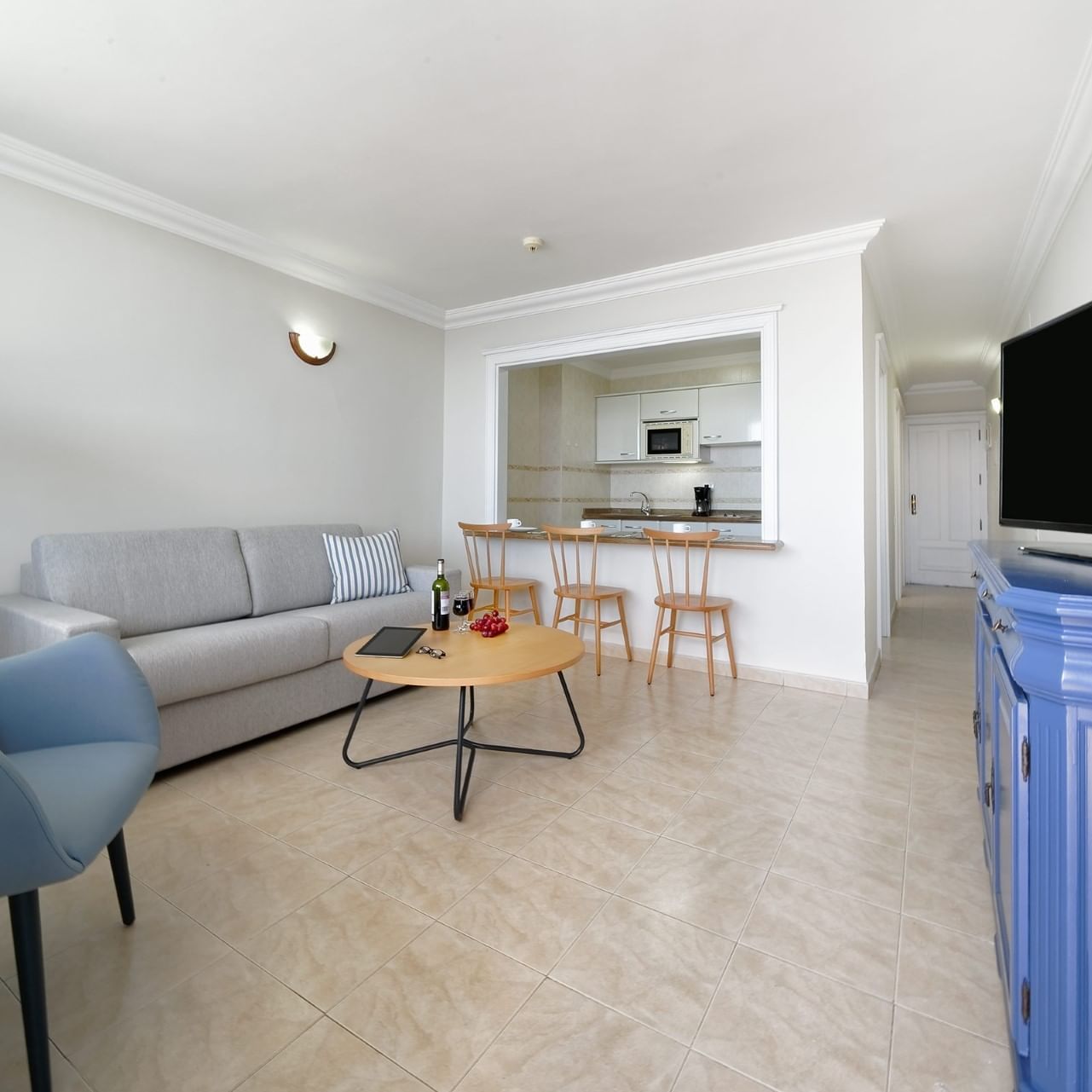 The One Bedroom Apartments feature a private balcony or terrace, bathroom with shower and hair dryer, and come equipped with fridge, tea and coffee making facilities, LCD TV (national and international satellite), air conditioning and safety deposit box. A well equipped kitchenette and living room with a sofa make each apartment the ideal accommodation for a memorable self-catering vacation.