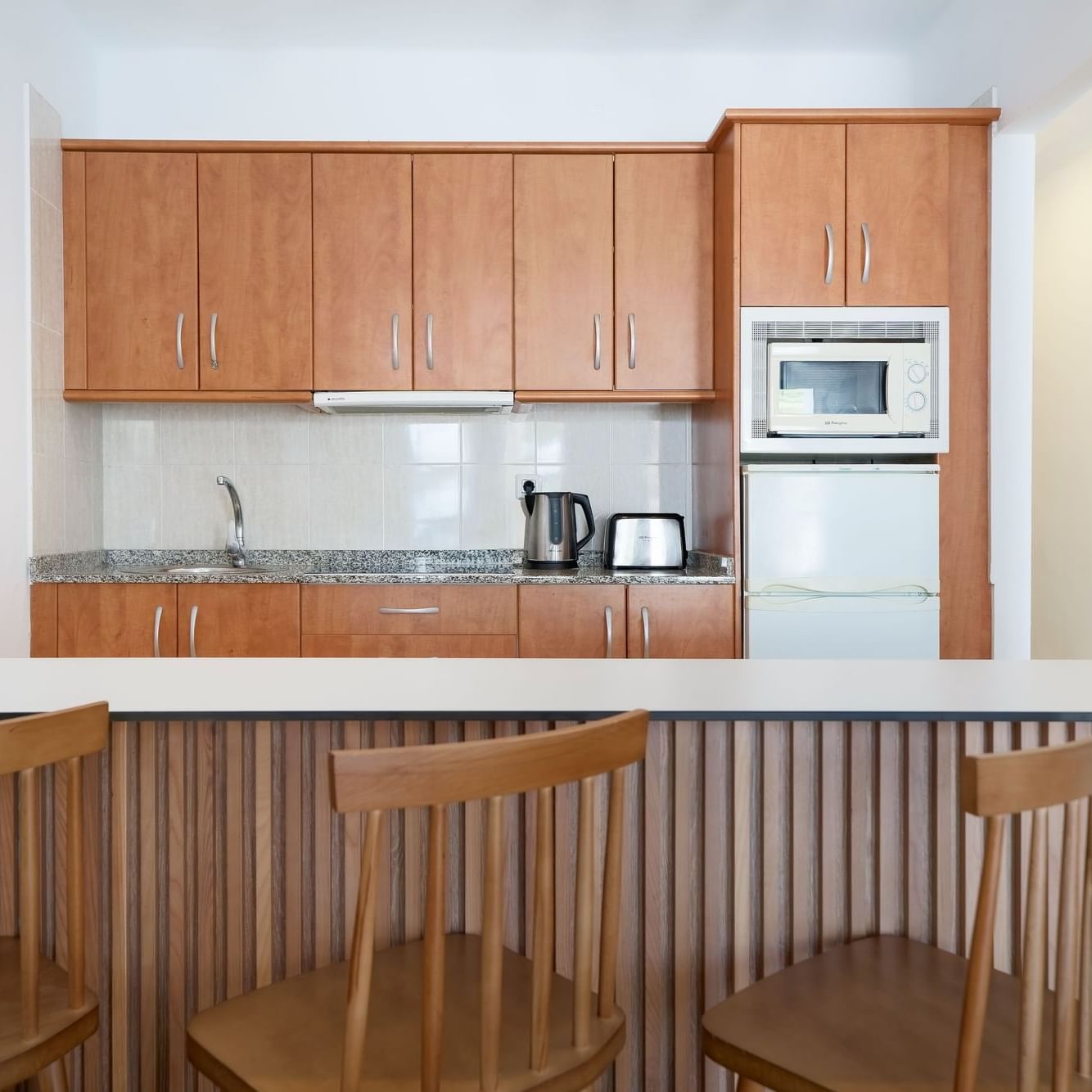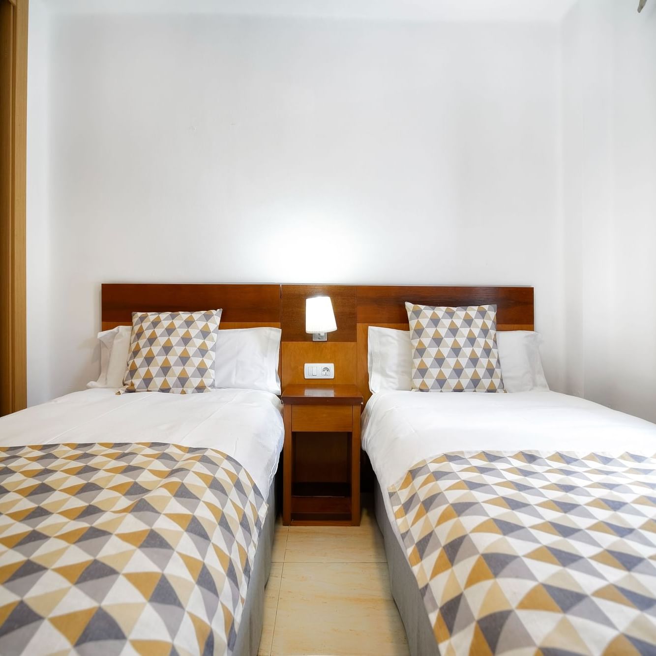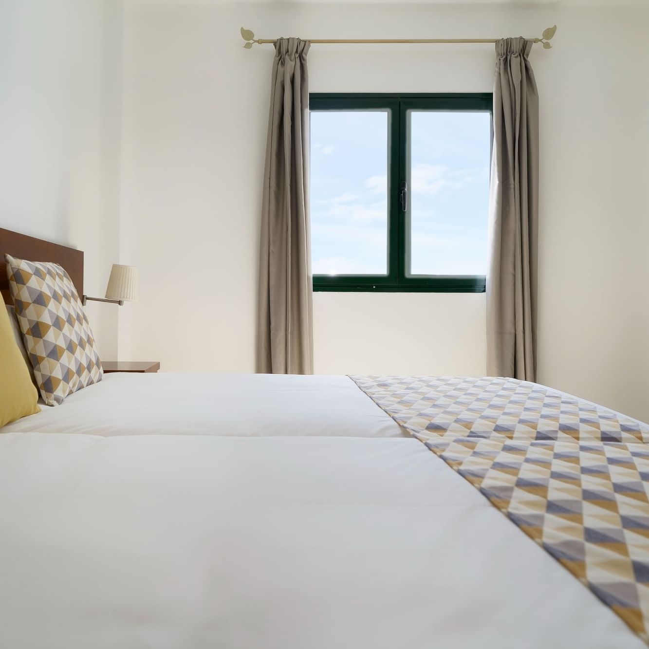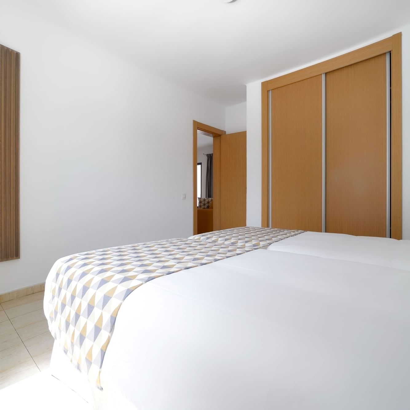 The Two Bedroom Apartments consist of two bedrooms, private balcony or terrace, bathroom with shower or bathtub and hair dryer. They come equipped with LCD TV (national and international satellite) and safety deposit box. A well equipped kitchenette with fridge, tea and coffee making facilities and toaster as well as a living room with a sofa bed, make each apartment the ideal accommodation for a memorable self-catering vacation.