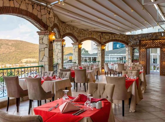 Среди красот Эфеса свежеприготовленные, великолепные блюда, гостеприимные рестораны с безмятежной атмосферой, а также обслуживание, пропитанное теплотой и дружелюбием местной культуры. Каждый из ресторанов и баров LABRANDA Ephesus Princess в полной мере объединяет данные элементы, обеспечивая место встречи, в котором можно насладиться ароматным бризом, роскошными видами и богатыми кулинарными блюдами.