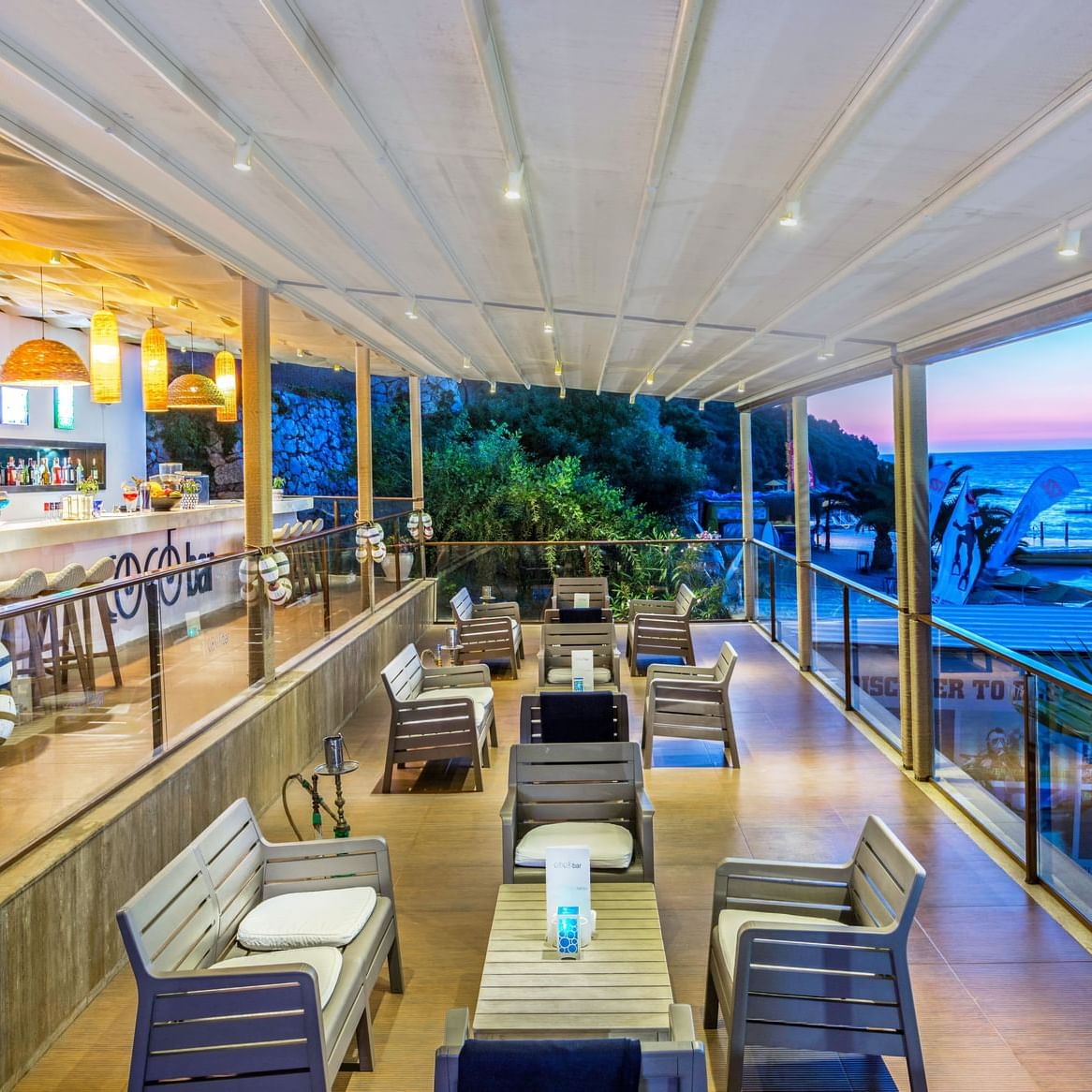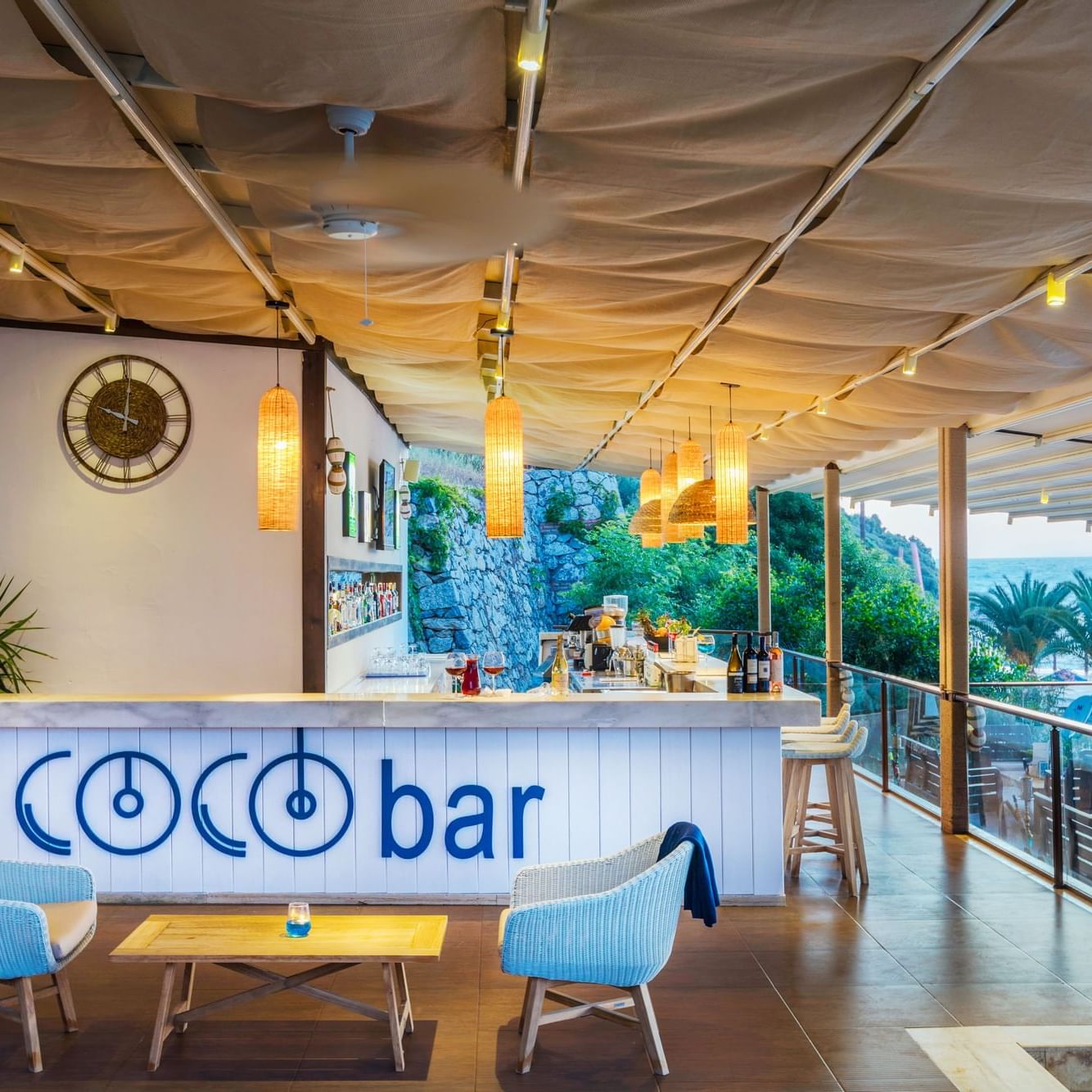 Тут подаются тропические коктейли премиум-класса, импортные безалкогольные и алкогольные напитки, кофе и чай.