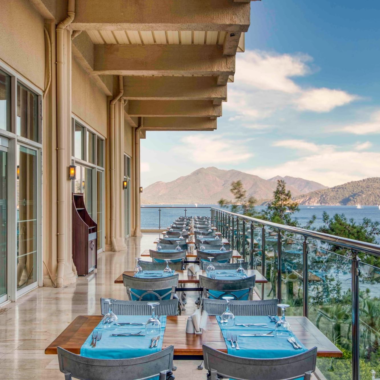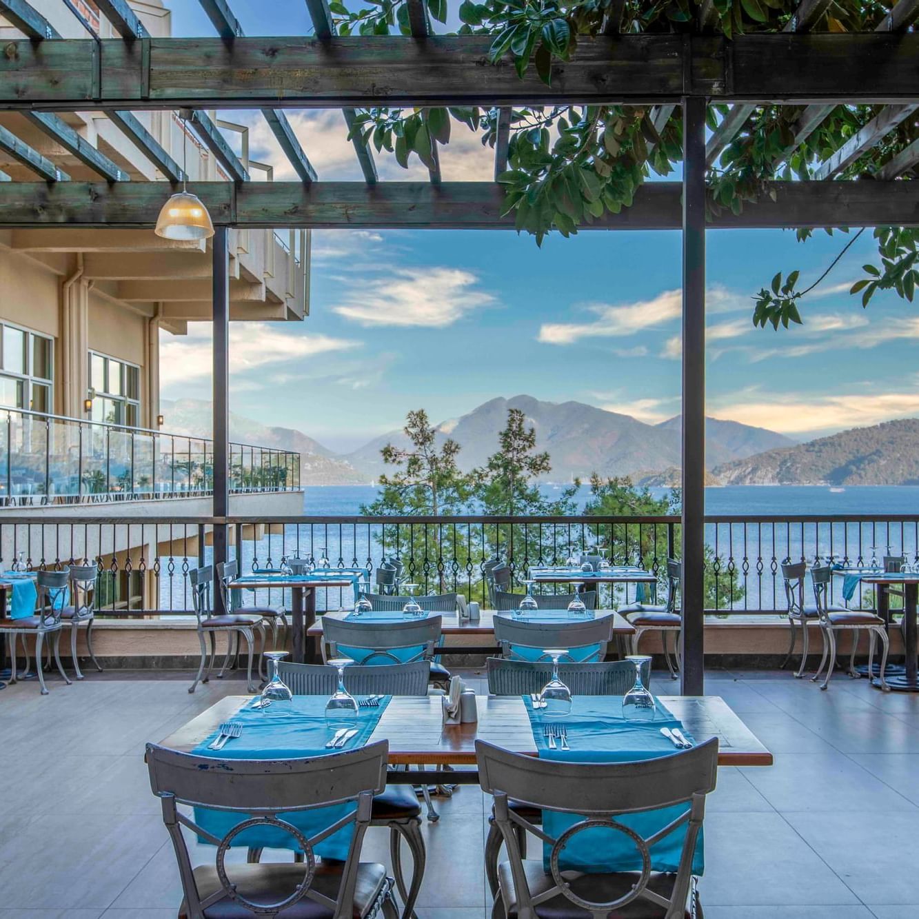 Этот ресторан, работающий в течение всего дня, предлагает завтрак, обед и ужин в форме шведского стола". Кроме того, на кулинарных станциях гостям предложат различные блюда интернациональной и местной турецкой кухни. , Ресторан расположен в главном здании и позволяет гостям наслаждаться трапезой как в помещении, так и на открытом воздухе.