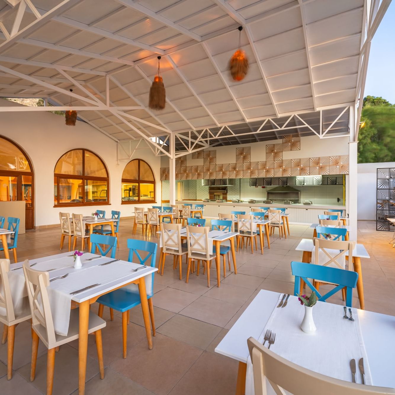 This all-day dining restaurant offers breakfast, lunch and dinner in buffet style. Live-cooking stations provide guests with a variety of international and local Turkish dishes. The restaurant is located 30 meters from the beach and allows guests to enjoy their meal in indoor and outdoor settings.