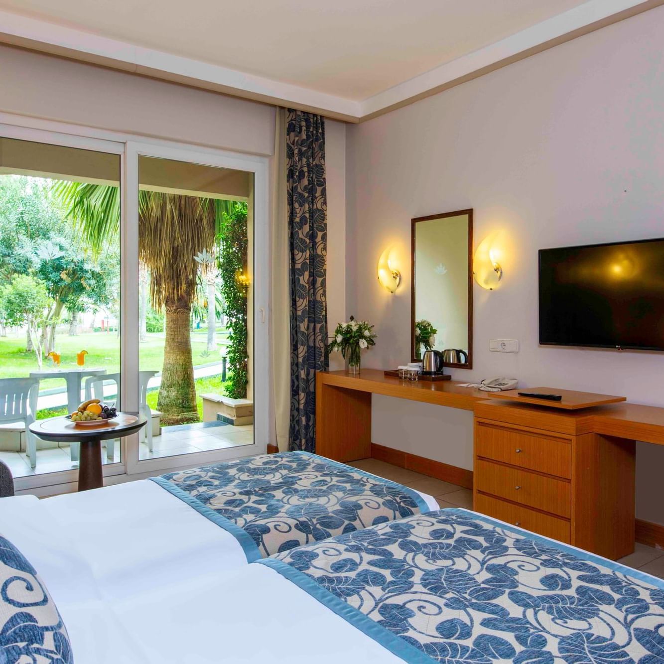 Bungalov binasında bulunan bu odalar 28m2 olup en fazla 3 kişi konaklayabilir. Her birinde iki adet tek kişilik yatak veya bir adet çift kişilik yatak (katlanır ilave yatak), balkon veya teras, merkezi klima (aralıklı) ve seramik zemin bulunmaktadır. Her odada yerel ve uluslararası kanalları izleyebileceğiniz LED televizyon, direkt diskli telefon, kasa, kahve ve çay yapma imkanı ve minibar($) (su ücretsiz) bulunmaktadır. Her banyoda seramik zemin, duş, makyaj aynası, banyo malzemeleri, terlik, bornoz, saç kurutma makinesi ve günlük oda temizliği mevcuttur. Engelli misafirler için 3 oda tasarlanmıştır.