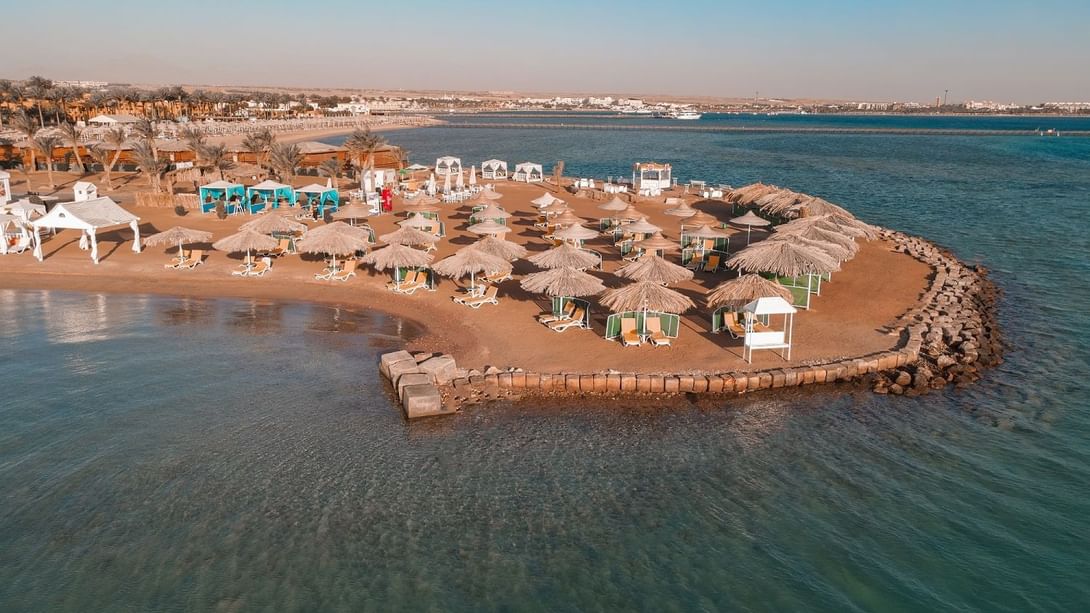 On Egypt’s Red Sea, Makadi Bay is a vibrant and bustling holiday town in which snorkelling and seafood are popular. This resort town is nestled between a mountain range and a desert while being well-known for its late-night discos and water parks.