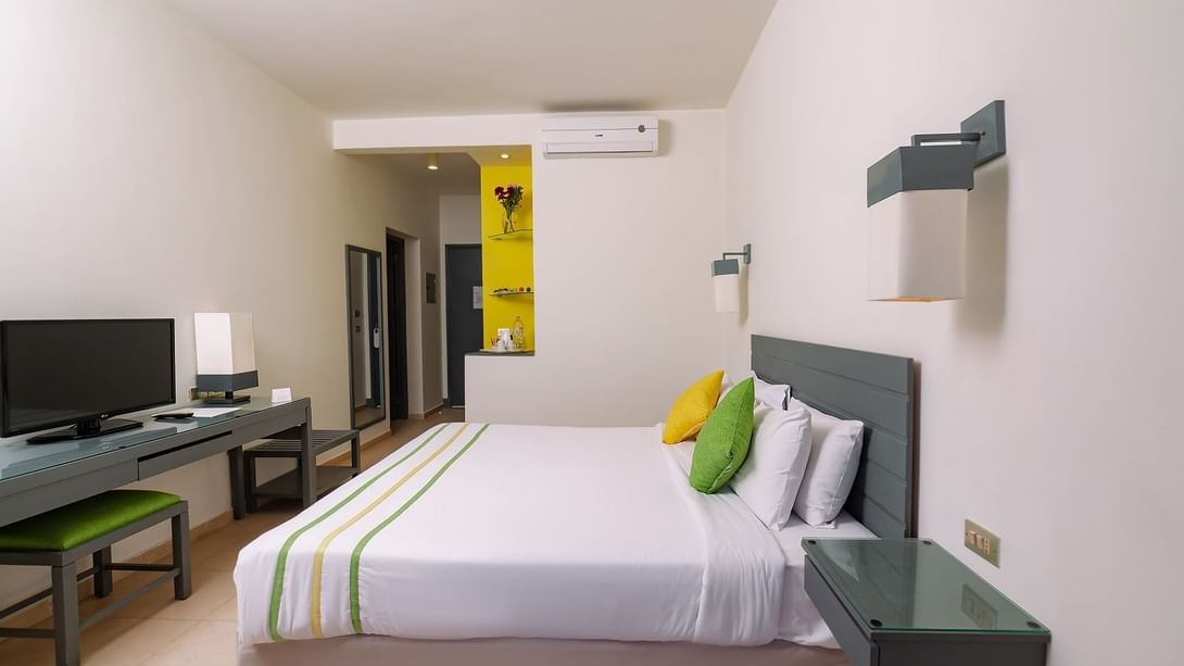 Standard Double Room Garden View features a king-size bed or two twin beds with air-conditioning and a private balcony with a garden view.